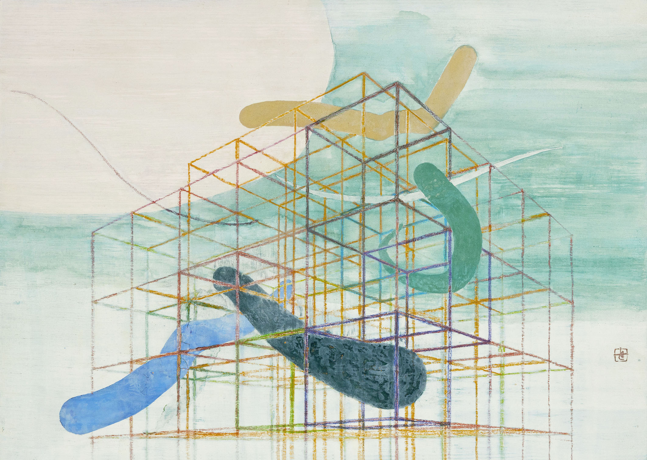 彼女の「表現者」としての才能は、子供の頃から様々なダンスや運動を体験することで培われてきました。やがてその体験は絵画の題材へと変化していくのですが、彼女の作品には、パフォーマーとしての躍動感と岩絵具特有の質感による静寂さという、相反する特徴が感じられます。パルクールの「自らスタートとゴールを決め、リズミカルに障害を超えていく」という概念は、服部世梨菜の作品に対する姿勢そのものではないでしょうか。