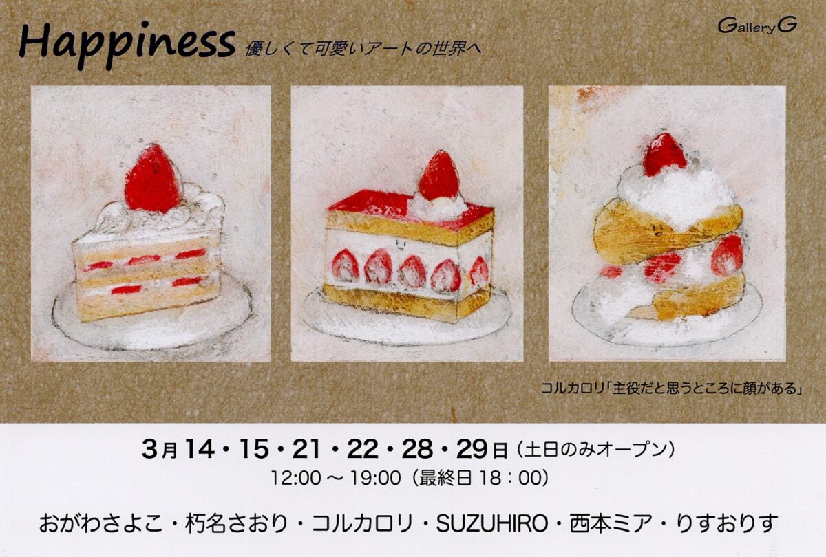 暖かな春の日差しのような、優しく可愛くてほっこり癒やされる作品たちが並ぶ展覧会。6名の作家の水彩画、アクリル画、ステンシル技法などの絵画作品や刺繍、立体作品がギャラリーを彩ります。ぜひお出かけください。